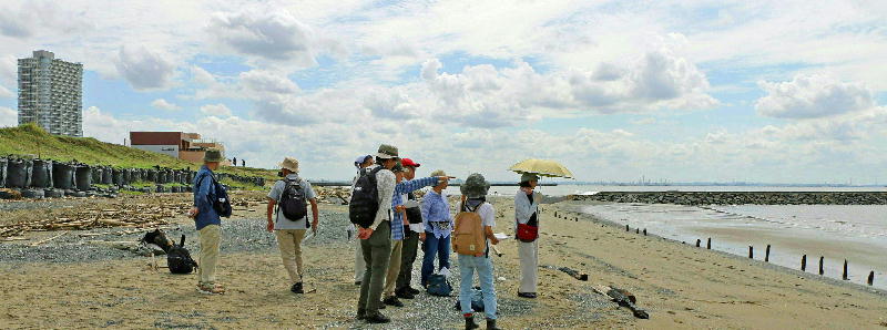 三番瀬保全団体のメンバーは(2025年)9月23日、人工干潟の失敗例として、千葉県が千葉市美浜区の海岸で造成した人工海浜「幕張の浜」を見学した。その惨たんたる状況を見た参加者はア然ボー然だった。
