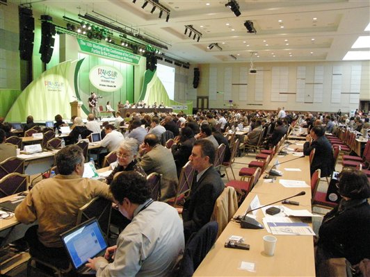 ラムサール条約第10 回締約国会議が終わって、次の焦点は生物多様性条約のCOP10 となった。あらためてラムサールCOP10 の成果、特に採択された決議を見て み た い。 ラ ム サ ー ル COP5( 釧 路 会 議、1993 年)以降、今回は初めて決議の日本語版編纂作業が行われていないからだ。 各国政府に湿地を守ると約束してもらいたいという NGO の働きかけから、ラムサール条約は誕生した。こうした条約の歴史を振り返ると、日韓の NGO が実現に向けて協力した水田決議(決議 31)や、韓国政府がイニシアティブをとった「昌原宣言」(決議3)の意義は大きい。 しかし、ラムサール COP10 で採択された決議は 32 本ある。条約運用に関わる決議以外にも、これからの湿地保全に重要な決議がある。 ラムサール COP の決議は大別すると、条約運用に関わる決議―予算や事務局業務―と一般的な湿地保全に関する決議とに分けられる。条約運用決議はさらに、条約事務局や常設委員会、STRP( 科学技術検討委員会 ) 等といった条約機関に関するものと、条約運営に資金を提供している各締約国政府に関するものとがある。 一方、湿地保全に関する決議は、条約の枠組みを利用した湿地保全に関するものと、より一般的なものとに分けられる ( 決議の分類参照 )。 いくつかの決議は複数の分野にまたがっており、日豪政府の努力も関係するフライウェイ決議 ( 決議 22) や水田決議は、一般的な湿地保全に関連する決議としてとらえられるだろうが、今後、条約の枠組み ( 登録湿地やワイズユース)に直接関連した決議として、発展していく可能性がある。 ![]() ラムサール COP10 本会議