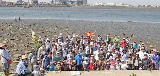 今年の多摩川河口干潟観察会は4月30日に開催しました。快晴で気温も上昇した当日、カニを中心とした干潟の生き物たちが活発に動きまわる中での開催となりました。参加者は94人です。